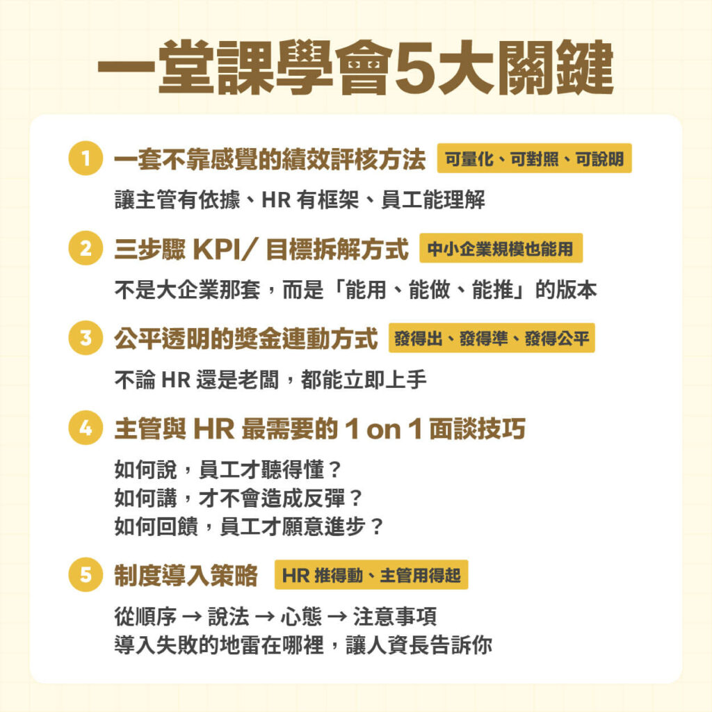 這堂課能讓 HR 提升制度能力:KPI 拆法/獎金連動設計/1 on 1 面談設計/導入策略